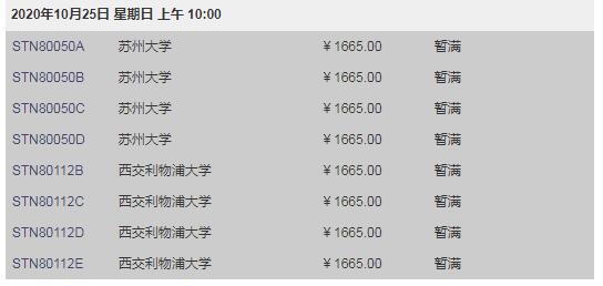 | 班级名称 | 班号 | 开课时间 | 人数 | 学费 | 报名 |