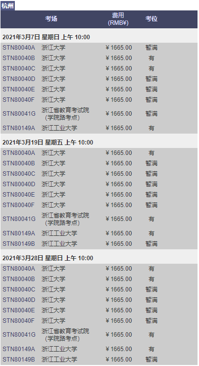 摘要:2021年3月-4月杭州GRE考点及考试时间详情介绍