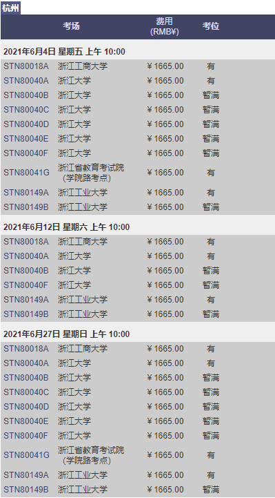 下面上海新航道gre老师带大家看一下 2021年5月-6月杭州gre考试时间及考点