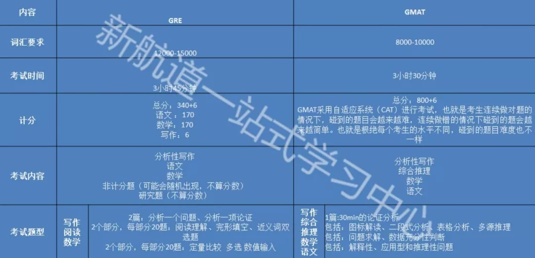 2)如果你数学不好,偏向文科,建议选择GRE。GMAT的数学难度较高于GRE。但是对于中国学生来说,无论GRE或是GMAT的数学考察难度都差不多在高中水平。