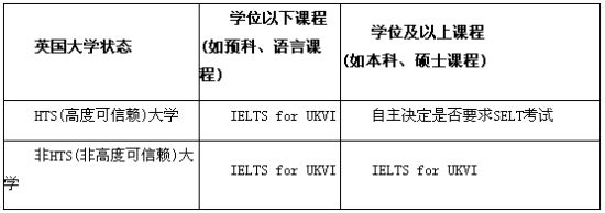 根据英国签证及移民局(UKVI)的规定,凡具有HTS (Highly Trusted Status) 高度可信赖资格的英国院校,则可以自主决定是否豁免申请学位以上课程学生的SELT考试。所以,并非所有申请英国留学的学生都要参加IELTS for UKVI考试,而是分为以下几种情况: