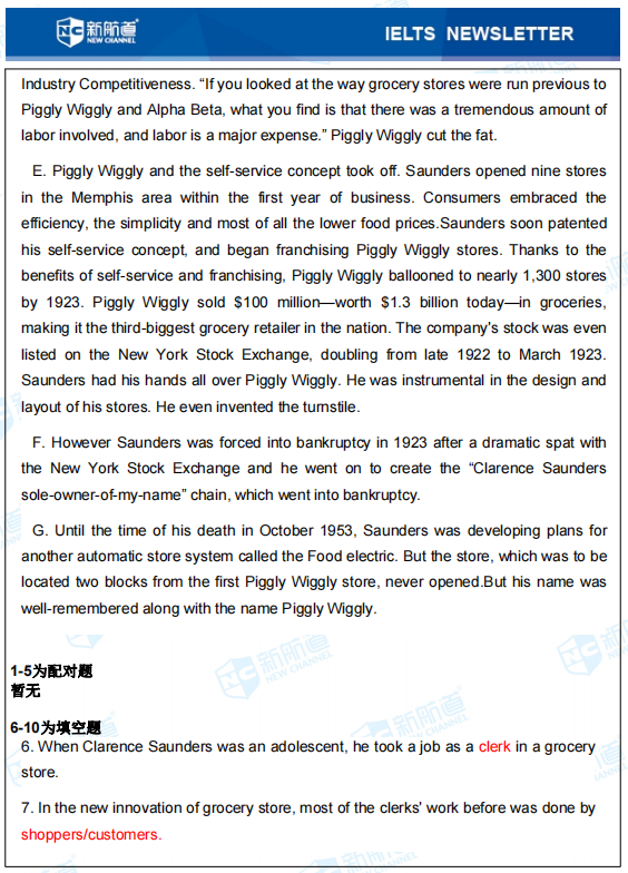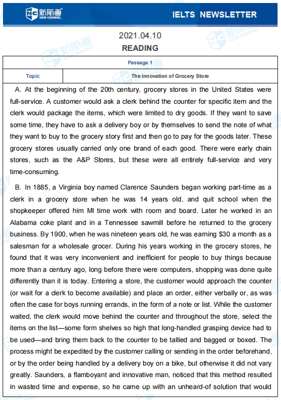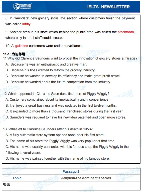 雅思考试阅读Passage 1对应