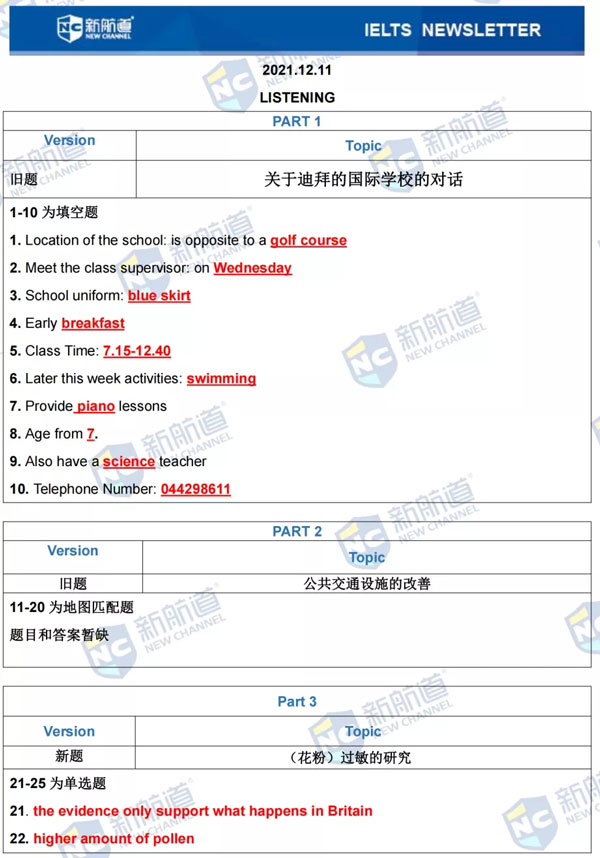 摘要:上海新航道学校雅思频道小编马上整理了给大家带来12月11日的雅思考试完整版考试内容解析。祝12.11日雅思的老铁们,都能顺利过过过!!!