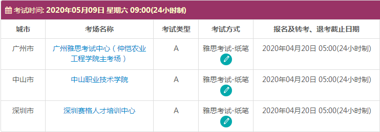 以上,就是上海新航道雅思小编为大家整理的2020年5月广东雅思考点的考试时间、考位以及考场信息。了解更多2020年雅思考点详情,请点击雅思考试频道 。