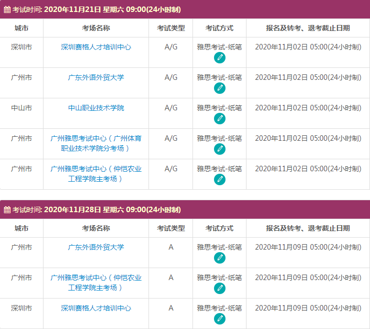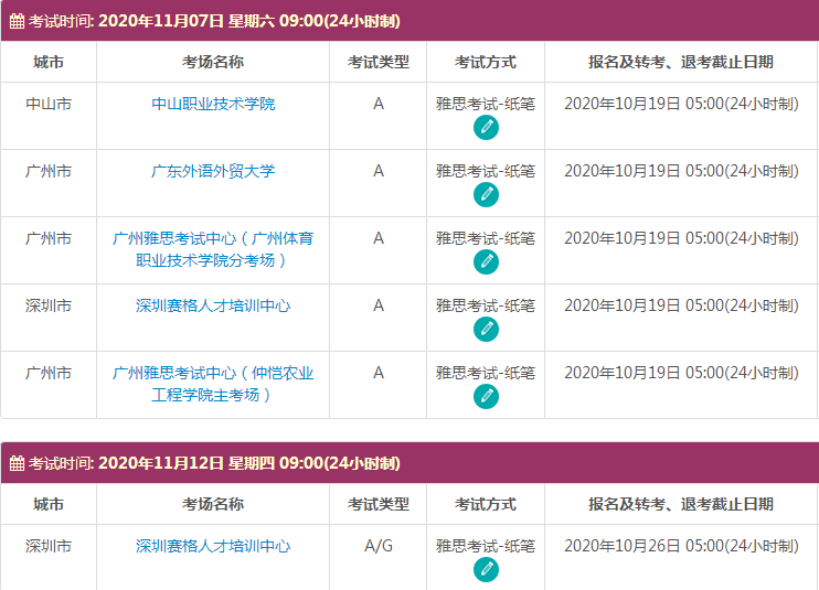 以上,就是上海新航道雅思小编为大家整理的2020年11月广东雅思考点的考试时间、考位以及考场信息。了解更多2020年雅思考点详情,请点击雅思考试频道 。