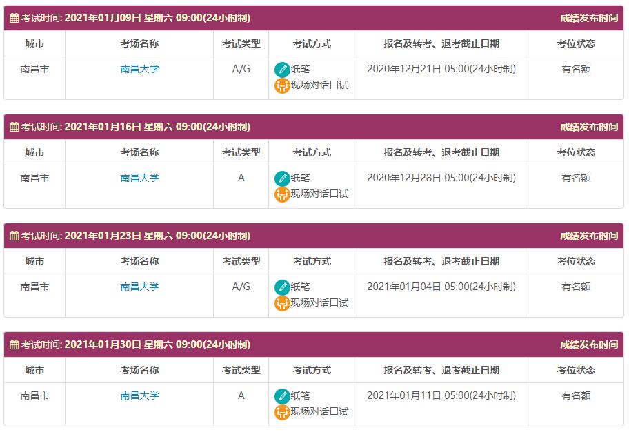 考试时间: 2021年01月09日 01月16日 01月23日 01月30日