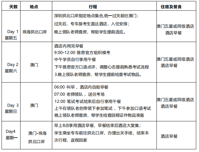 4. 住宿 :澳门五星或同级别酒店(根据学生总人数默认安排双人间)