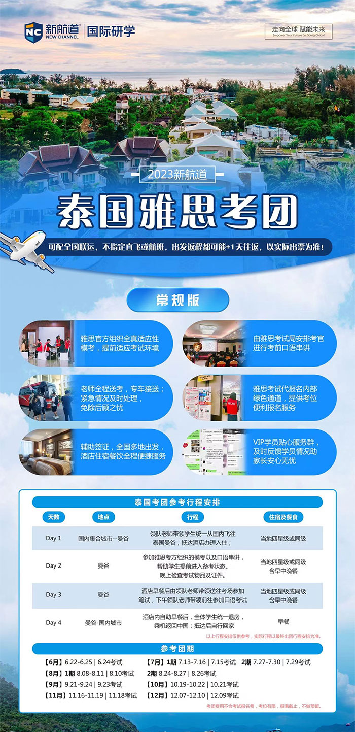 摘要:2023年10月21日 新航道泰国雅思4天常规考试团 雅思模考+讲评+考试