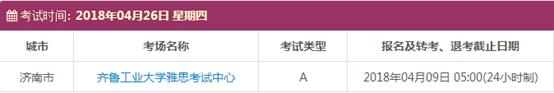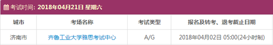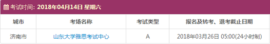 以上,就是上海新航道雅思小编为大家整理的2018年4月山东雅思考点的考试时间、考位以及考场信息。了解更多2018年雅思考点详情,请点击雅思考试频道 。