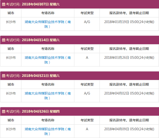 考试时间:4月7日(A/G)、4月14日(A)、4月21日(A/G)、4月26日(A)