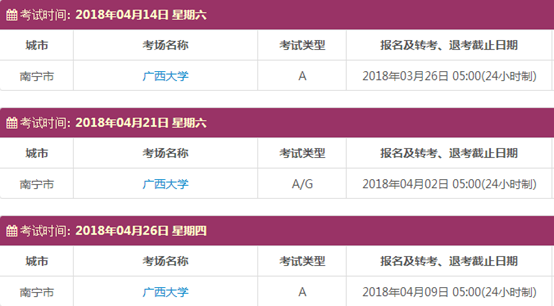 考试时间:4月14日(A)、4月21日(A/G)、4月26日(A)