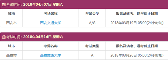 考试时间:4月7日(A/G)、4月14日(A)