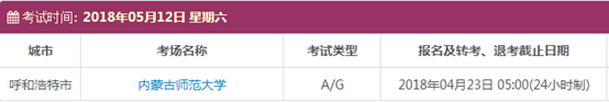 以上,就是上海新航道雅思小编为大家整理的2018年5月内蒙古雅思考点的考试时间、考位以及考场信息。了解更多2018年雅思考点详情,请点击雅思考试频道 。