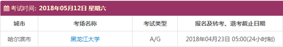 以上,就是上海新航道雅思小编为大家整理的2018年5月黑龙江雅思考点的考试时间、考位以及考场信息。了解更多2018年雅思考点详情,请点击雅思考试频道 。