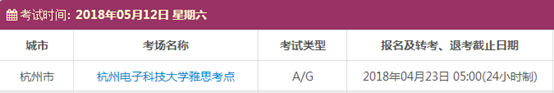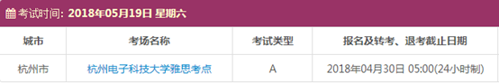 以上,就是上海新航道雅思小编为大家整理的2018年5月浙江雅思考点的考试时间、考位以及考场信息。了解更多2018年雅思考点详情,请点击雅思考试频道 。