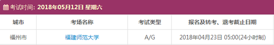 以上,就是上海新航道雅思小编为大家整理的2018年5月福建雅思考点的考试时间、考位以及考场信息。了解更多2018年雅思考点详情,请点击雅思考试频道 。