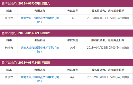 考试时间:5月5日(A)、5月12日(A/G)、5月24日(A/G)