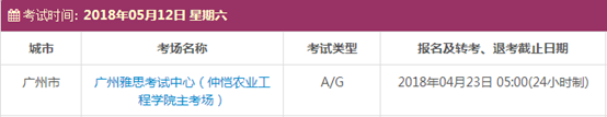 以上,就是上海新航道雅思小编为大家整理的2018年5月广东雅思考点的考试时间、考位以及考场信息。了解更多2018年雅思考点详情,请点击雅思考试频道 。