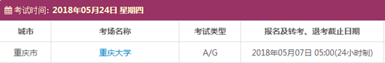 以上,就是上海新航道雅思小编为大家整理的2018年5月重庆雅思考点的考试时间、考位以及考场信息。了解更多2018年雅思考点详情,请点击雅思考试频道 。
