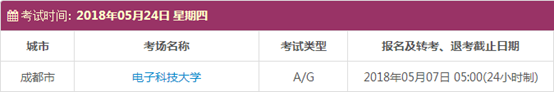考试时间:5月5日(A)、5月12日(A/G)、5月19日(A)、5月24日(A/G)