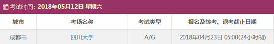 以上,就是上海新航道雅思小编为大家整理的2018年5月四川雅思考点的考试时间、考位以及考场信息。了解更多2018年雅思考点详情,请点击雅思考试频道 。
