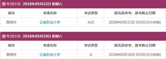 考试时间:5月12日(A/G)、5月19日(A)