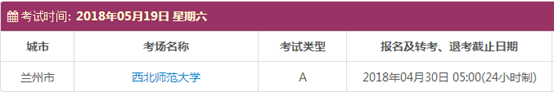 以上,就是上海新航道雅思小编为大家整理的2018年5月甘肃雅思考点的考试时间、考位以及考场信息。了解更多2018年雅思考点详情,请点击雅思考试频道 。