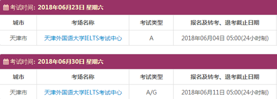 以上,就是上海新航道雅思小编为大家整理的2018年6月天津雅思考点的考试时间、考位以及考场信息。了解更多2018年雅思考点详情,请点击雅思考试频道 。