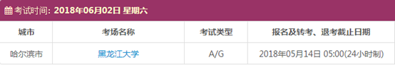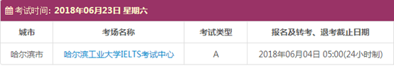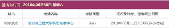 以上,就是上海新航道雅思小编为大家整理的2018年6月黑龙江雅思考点的考试时间、考位以及考场信息。了解更多2018年雅思考点详情,请点击雅思考试频道 。