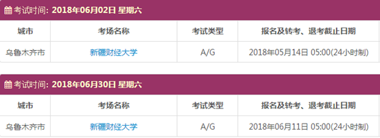 考试时间:6月2日(A/G)、6月30日(A/G)