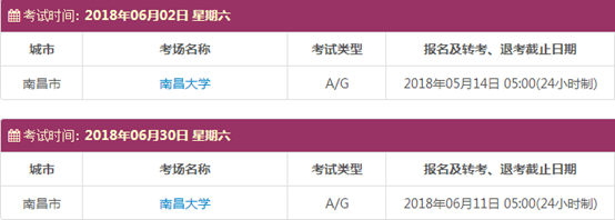 考试时间:6月2日(A/G)、6月30日(A/G)
