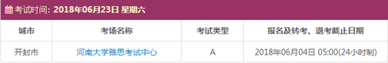 以上,就是上海新航道雅思小编为大家整理的2018年6月河南雅思考点的考试时间、考位以及考场信息。了解更多2018年雅思考点详情,请点击雅思考试频道 。