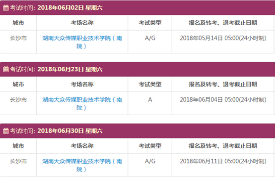 考试时间:6月2日(A/G)、6月23日(A)、6月30日(A/G)