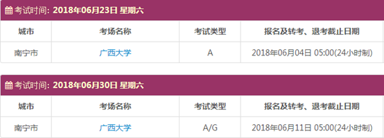 考试时间:6月23日(A)、6月30日(A/G)