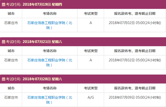 考试时间:7月19日(A)、7月21日(A)、7月28日(A/G)
