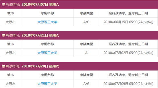 考试时间:7月7日(A\G)、7月21日(A)、7月28日(A\G)