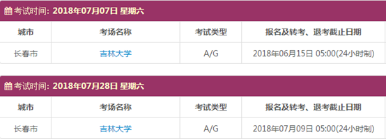 考试时间:7月7日(A/G)、7月28日(A/G)