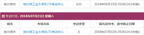 以上,就是上海新航道雅思小编为大家整理的2018年7月黑龙江雅思考点的考试时间、考位以及考场信息。了解更多2018年雅思考点详情,请点击雅思考试频道 。
