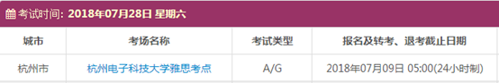 以上,就是上海新航道雅思小编为大家整理的2018年7月浙江雅思考点的考试时间、考位以及考场信息。了解更多2018年雅思考点详情,请点击雅思考试频道 。