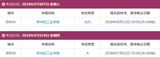 考试时间:7月7日(A/G)、7月19日(A)、7月28日(A/G)