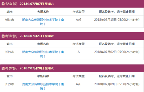 考试时间:7月7日(A/G)、7月21日(A)、7月28日(A/G)