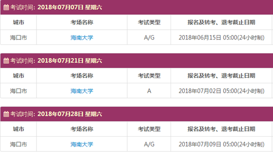 考试时间:7月7日(A/G)、7月21日(A)、7月28日(A/G)