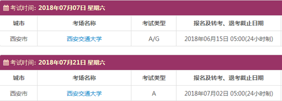 考试时间:7月7日(A/G)、7月21日(A)