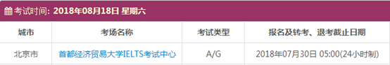以上,就是上海新航道雅思小编为大家整理的2018年8月北京雅思考点的考试时间、考位以及考场信息。了解更多2018年雅思考点详情,请点击雅思考试频道 。