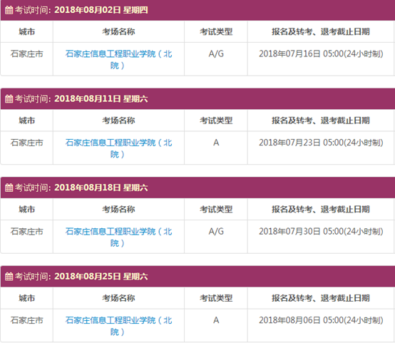 考试时间:8月2日(A/G)、8月11日(A)、8月18日(A/G)、8月25日(A)