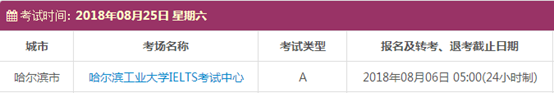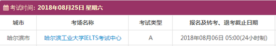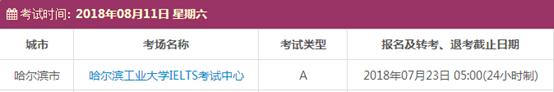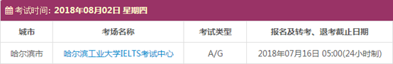 以上,就是上海新航道雅思小编为大家整理的2018年8月黑龙江雅思考点的考试时间、考位以及考场信息。了解更多2018年雅思考点详情,请点击雅思考试频道 。