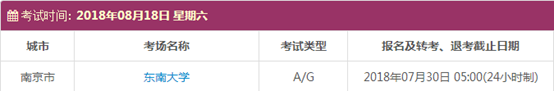 考试时间:8月11日(A)、8月18日(A/G)、8月25日(A)