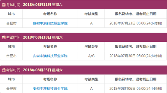 考试时间:8月11日(A)、8月18日(A/G)、8月25日(A)