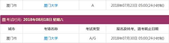 考试时间:8月11日(A)、8月18日(A/G)、8月25日(A)