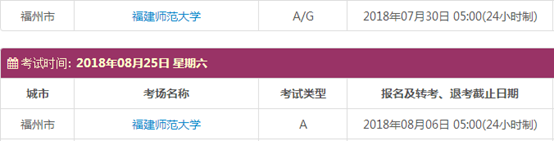 以上,就是上海新航道雅思小编为大家整理的2018年8月福建雅思考点的考试时间、考位以及考场信息。了解更多2018年雅思考点详情,请点击雅思考试频道 。